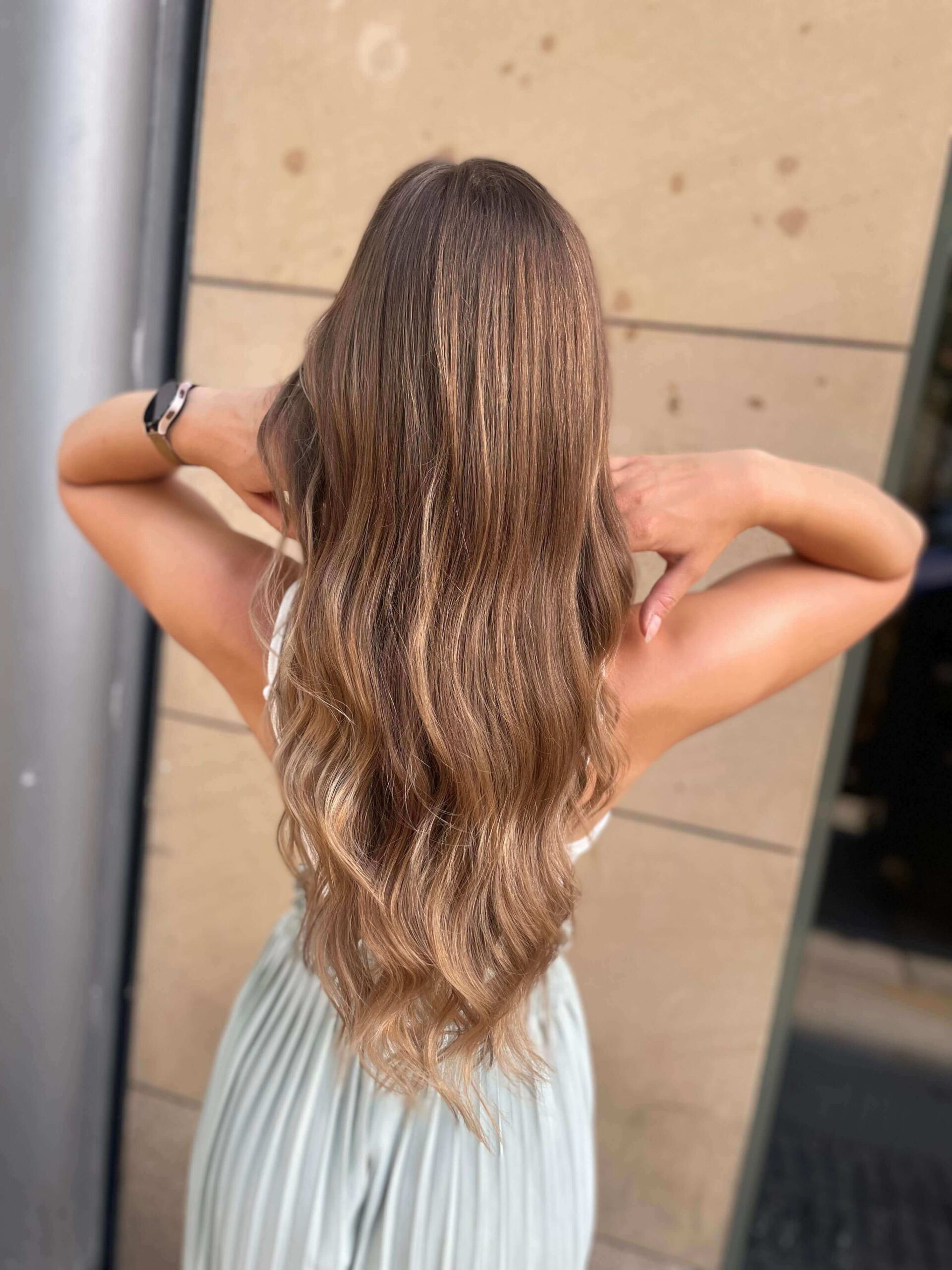 Deine Balayage erhältst du inklusive Tönung, schneiden und stylen. Plane bitte einen Zeitaufwand von 3 bis 5 Stunden ein.